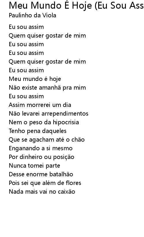 | Song | Meu Mundo É Hoje (Eu Sou Assim) |