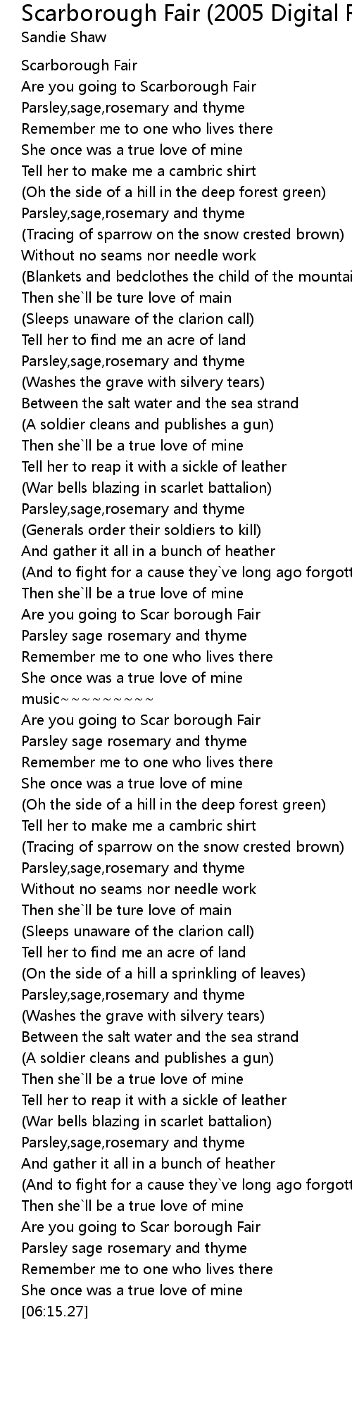 Scarborough Fair (2005 Digital Remaster) Lyrics