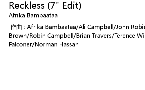 | [00:00.000] | 作曲 : Afrika Bambaataa/Ali Campbell/John Robie/MALIBU/Jim Brown/Robin Campbell/Brian Travers/Terence Wilson/Michael Virtue/Earl Falconer/Norman Hassan |