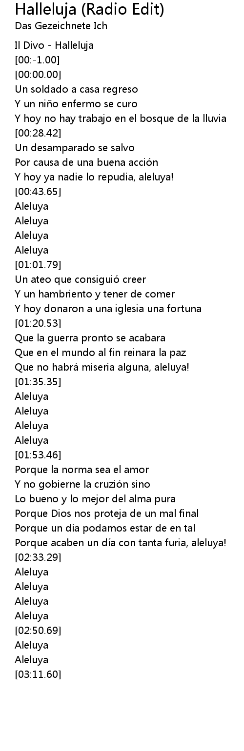 | [02:26.71] | Porque acaben un dí a con tanta furia, aleluya! |