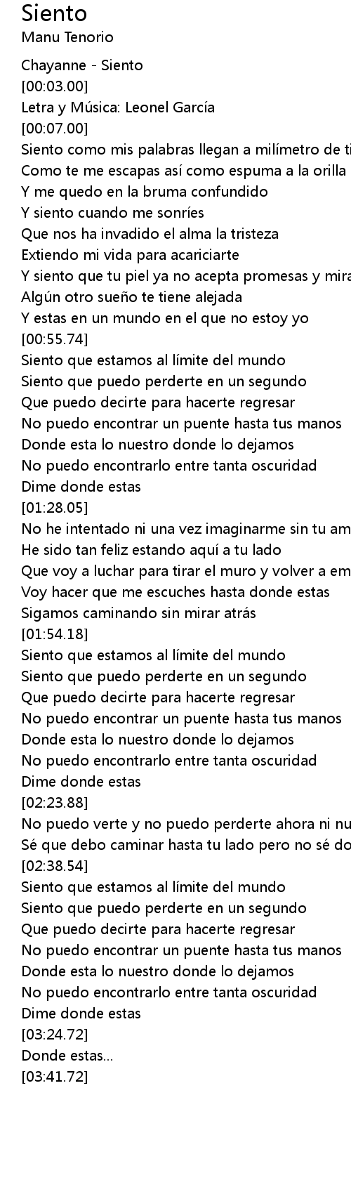| [00:01.00] | Chayanne Siento |