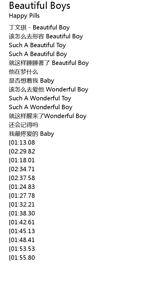 | [03:02.96][01:48.41] | huì zěn me yàng jié shù Beautiful Boy |