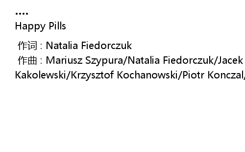 | [00:00.000] | 作曲 : Mariusz Szypura/Natalia Fiedorczuk/Jacek Kakolewski/Krzysztof Kochanowski/Piotr Konczal/Slawek Mizerkiewicz |