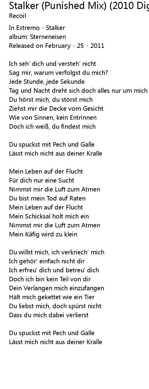 | Song | Stalker (Punished Mix) (2010 Digital Remaster) |