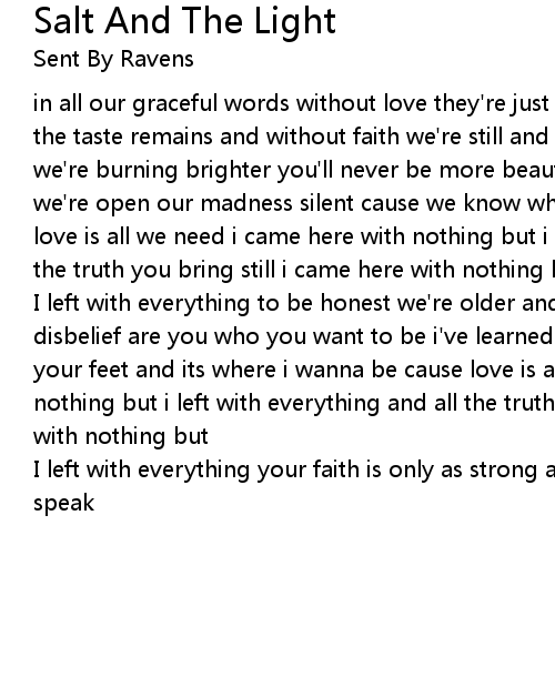 in all our graceful words without love they're just a burden from our tongues the taste remains and without faith we're still and arms length away but somehow we're burning brighter you'll never be more beautiful than today whole-hearted we're open our madness silent cause we know when you come you come in love cause love is all we need i came here with nothing but i left with everything and all the truth you bring still i came here with nothing but |