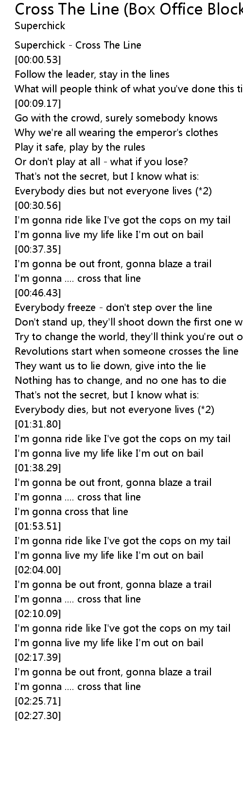 Cross The Line (Box Office Blockbuster Mix) Lyrics
