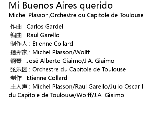 | [00:00.000] | 主人声 : Michel Plasson/Raul Garello/Julio Oscar Pane/Orchestre du Capitole de Toulouse/Wolff/J.A. Giaimo |