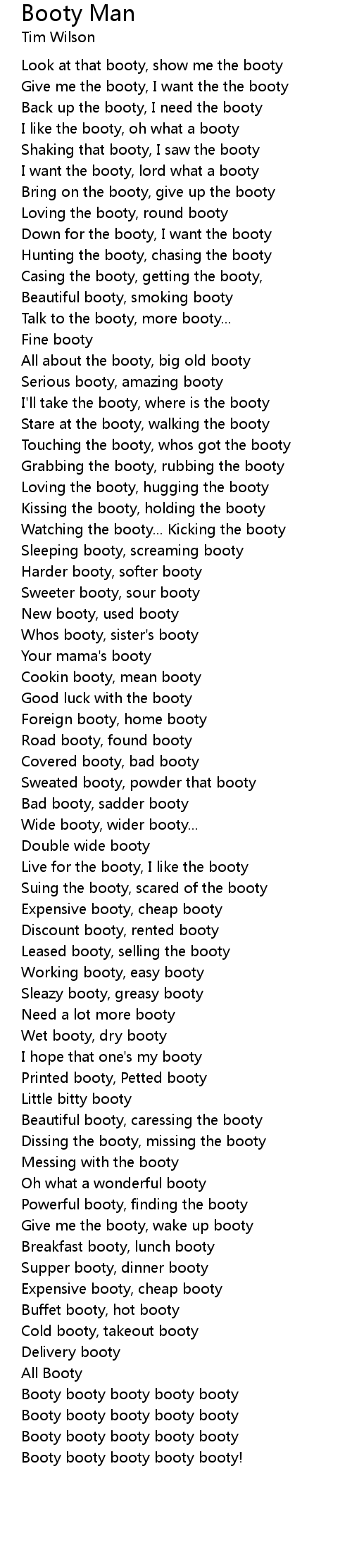 Back up the booty, I need the booty |