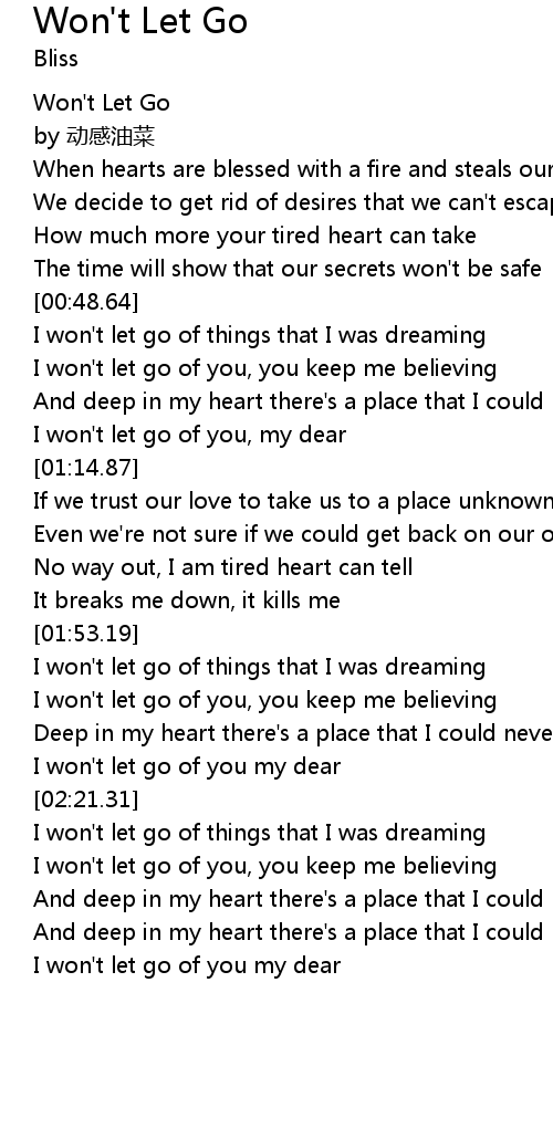 | [00:51.44] | I won't let go of things that I was dreaming |