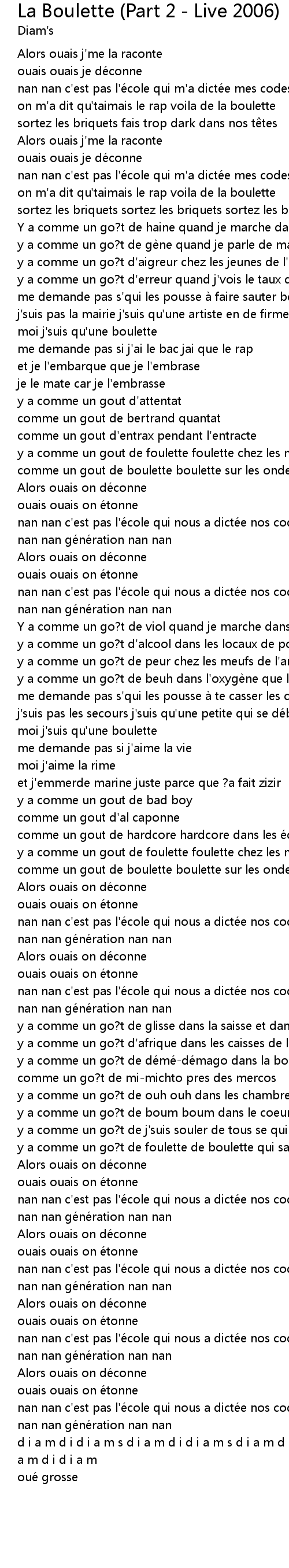 | [00:14.16] | on m' a dit qu' taimais le rap voila de la boulette |
