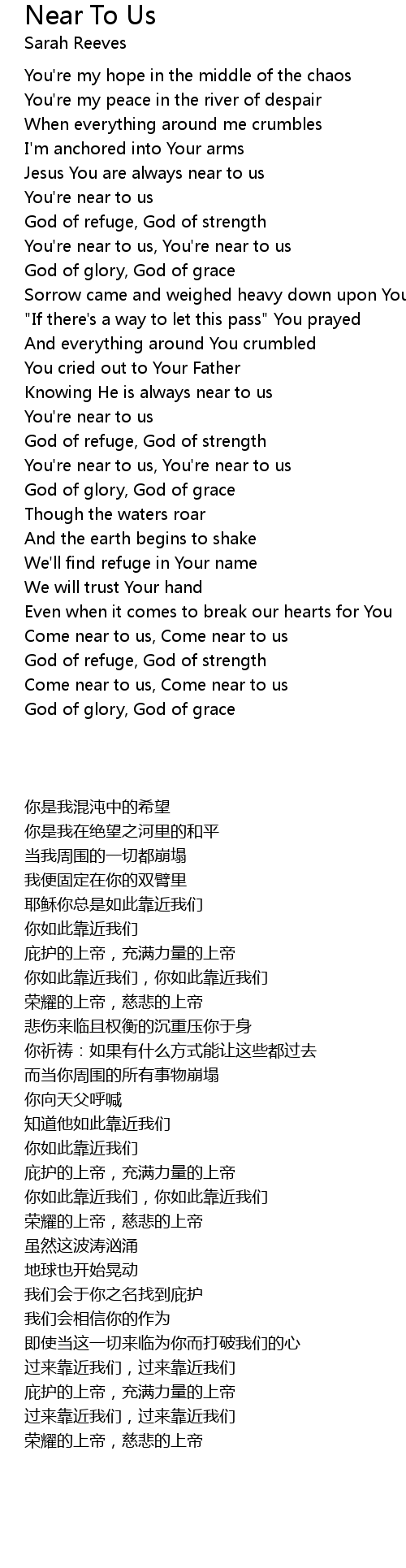 You're near to us, You're near to us |