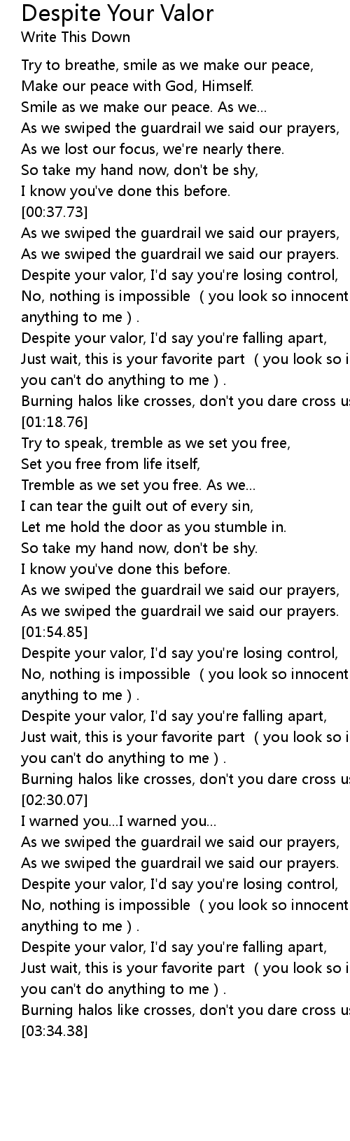 | Song | Despite Your Valor |