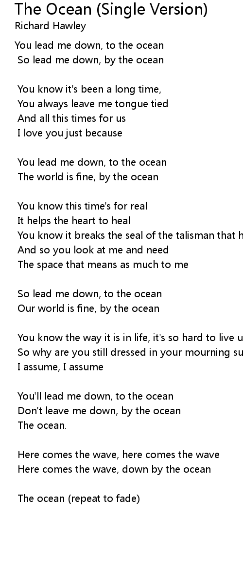So lead me down, by the ocean |