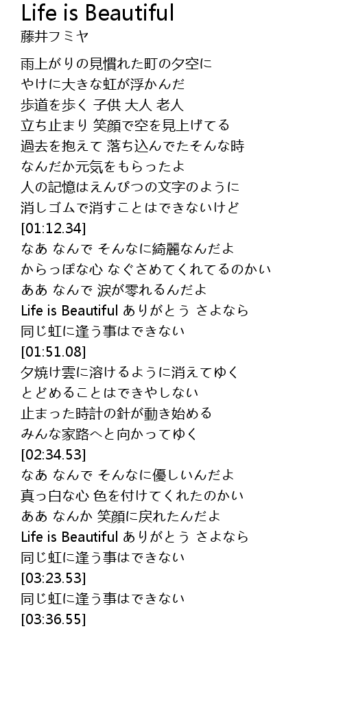 | [01:39.03] | Life is Beautiful |