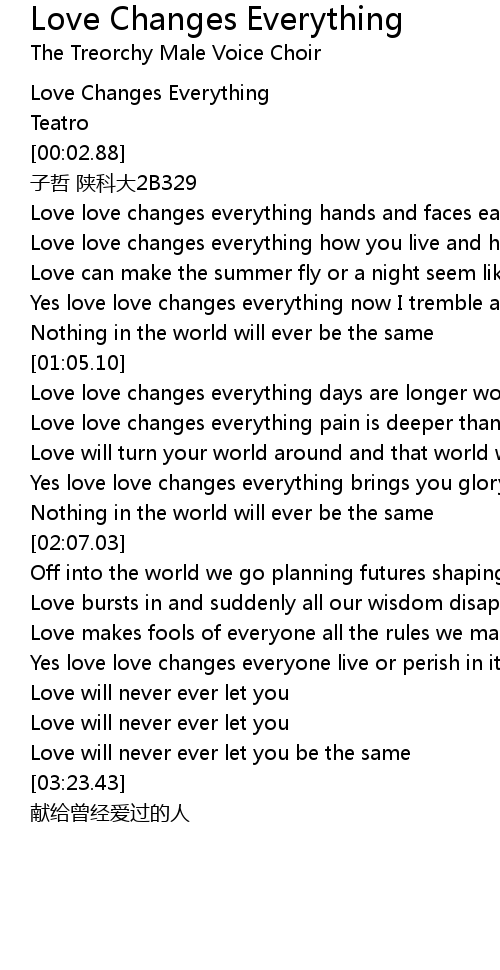 | [00:00.06] | Love Changes Everything |