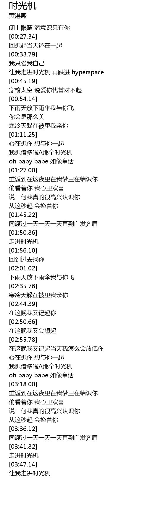 | [00:37.48] | 让我走进时光机 再跌进 hyperspace |