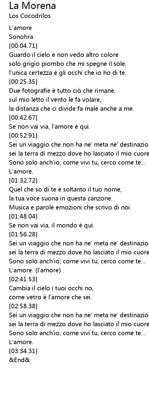 | [00:45.11] | Se non vai via, l'amore è qui. |