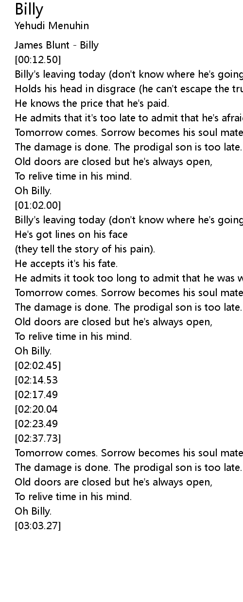 Tomorrow comes. Sorrow becomes his soul mate. |