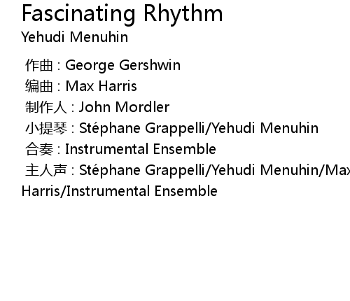 | [00:00.000] | zhǔ rén shēng : Sté phane Grappelli Yehudi Menuhin Max Harris Instrumental Ensemble |
