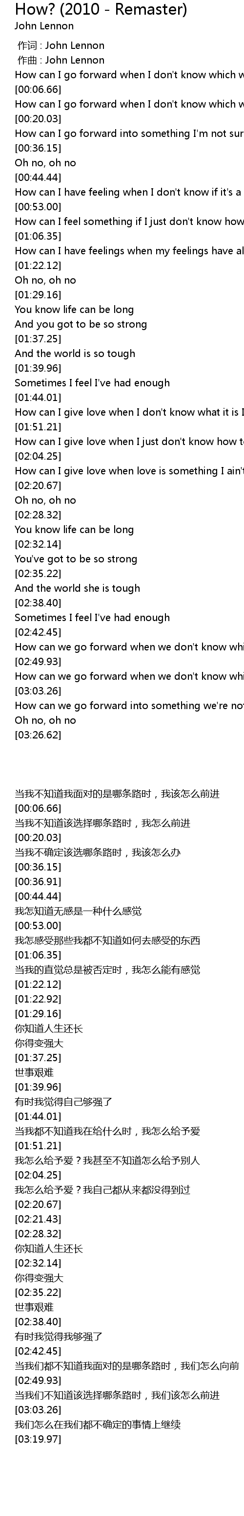 | [00:00.000] | zuo ci : John Lennon |