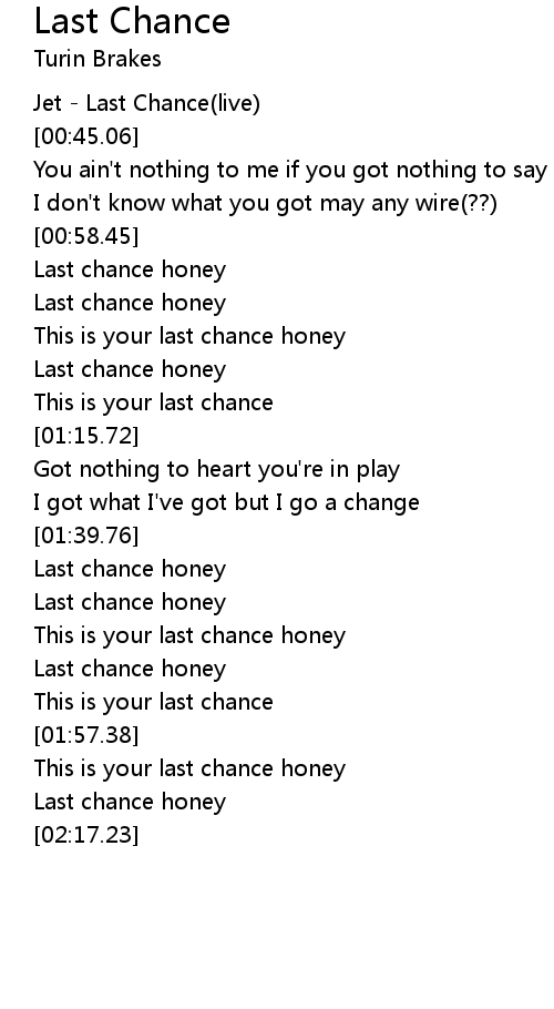 This is your last chance honey |