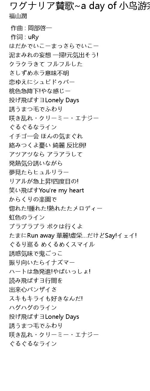 | Song | ワグナリア賛歌~a day of 小鸟游宗太 |