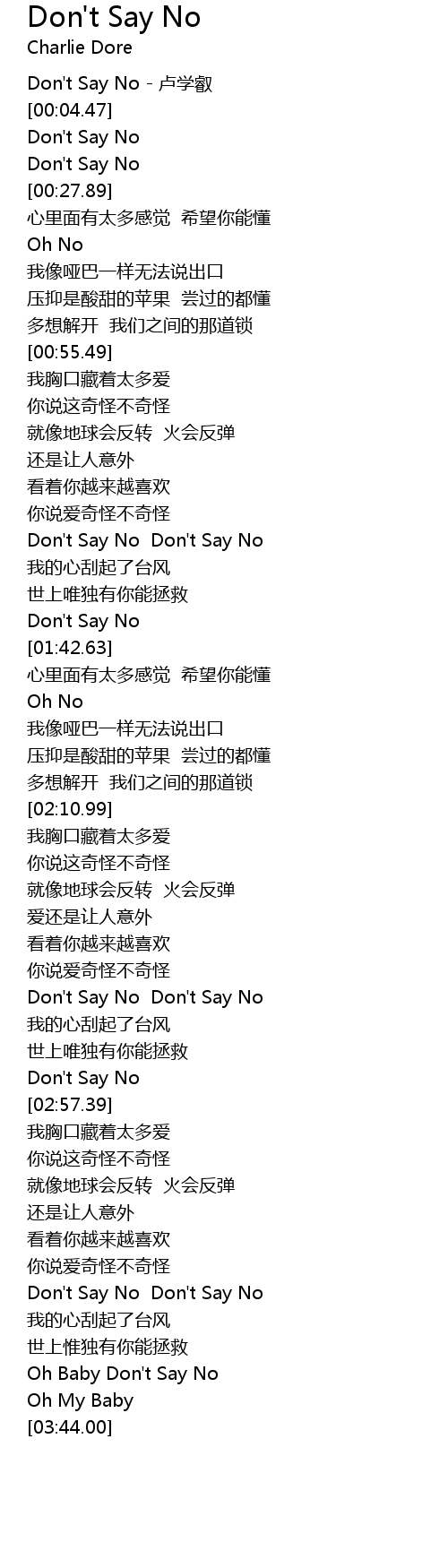 | [03:19.71] | Don' t Say No Don' t Say No |