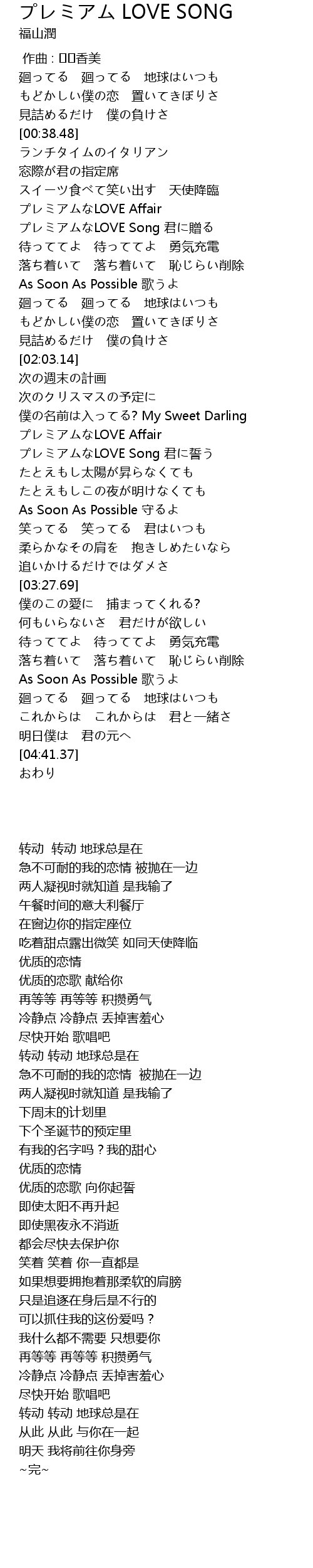 | [02:37.24] | プレミアムなLOVE Song 君に誓う |
