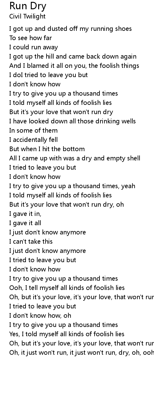 Oh, it just won't run, it just won't run, dry, oh, ooh |