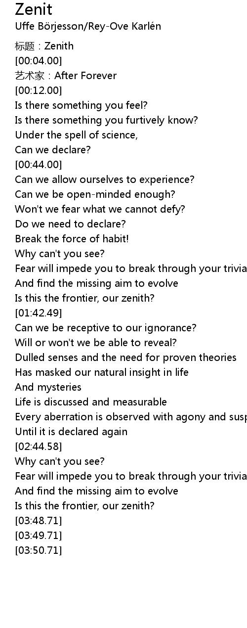 | [03:27.09] | Fear will impede you to break through your trivial life |