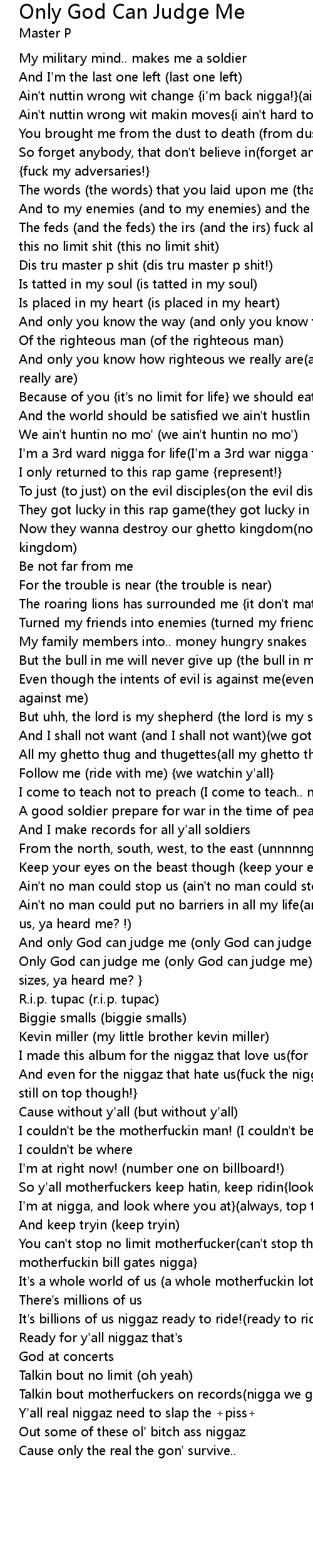 Only God can judge me (only God can judge me){snakes they come in all shapes and sizes, ya heard me? } |