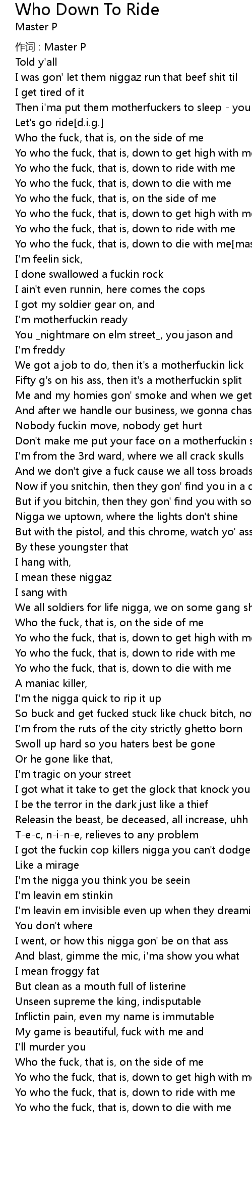 | Yo who the fuck, that is, down to die with me[master p] | |
