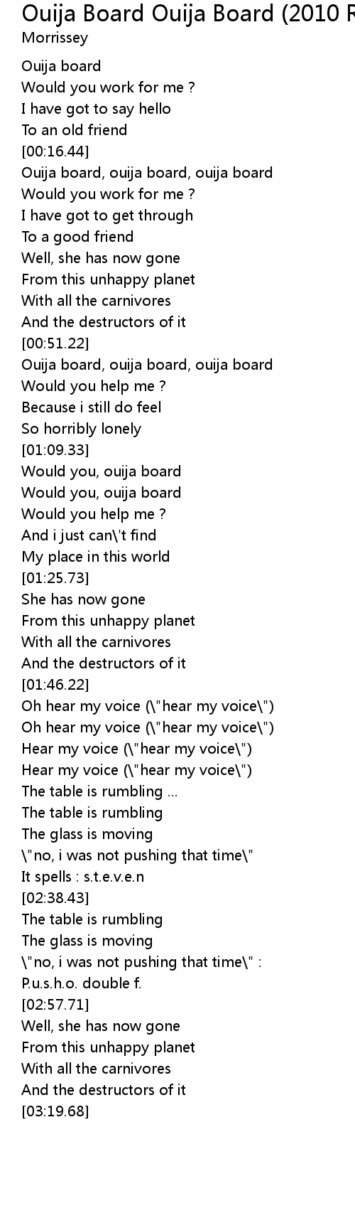 | [00:18.29] | Ouija board, ouija board, ouija board |
