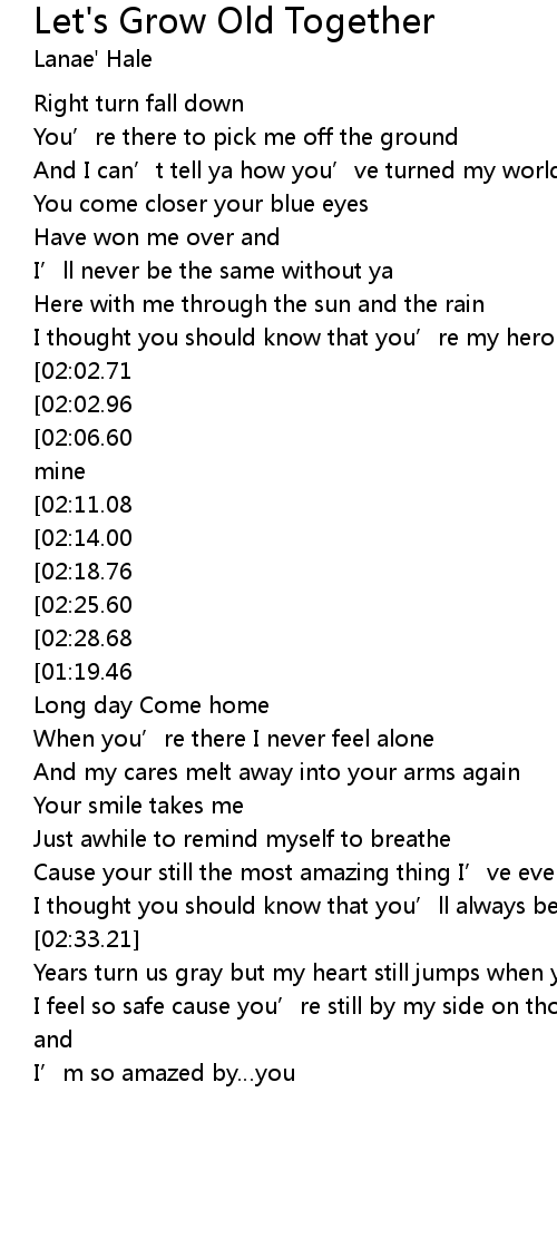 | [03:07.52][02:02.96][00:49.26] | Let' s grow old together |