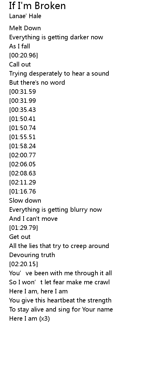 | [02:49.01][01:50.74][00:42.10] | If I'm broken or my body is whole |