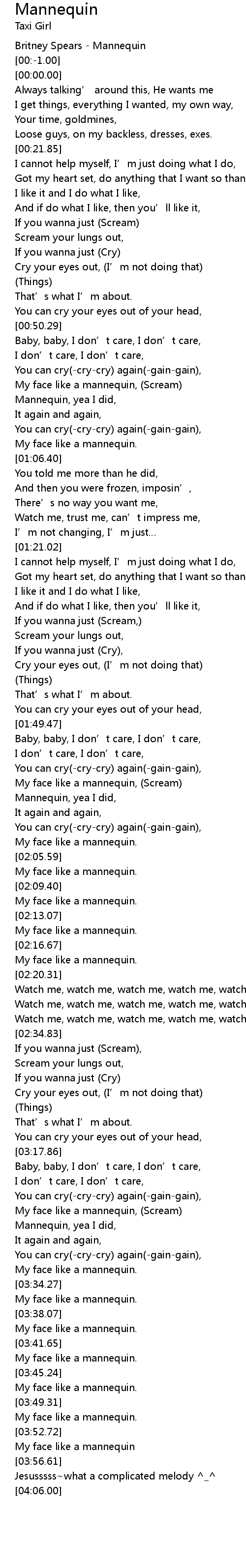 | [00:57.27] | My face like a mannequin, (Scream) |