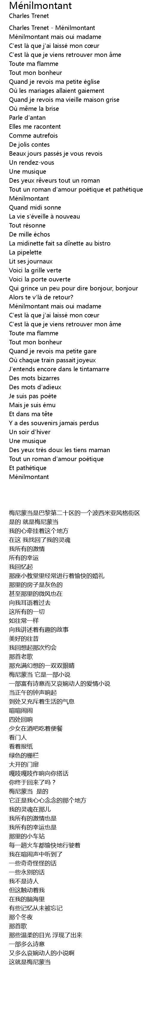 | [00:00.000] | Charles Trenet - Ménilmontant |