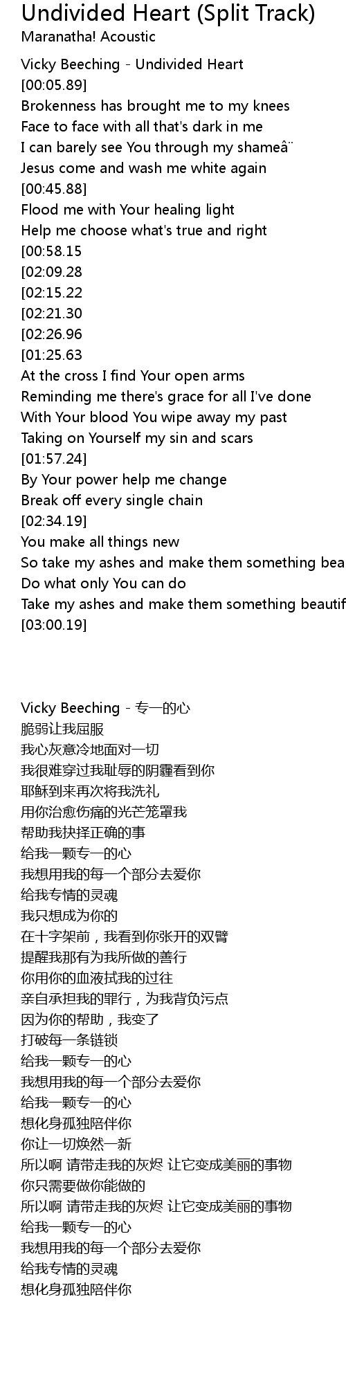 | [00:01.12] | Vicky Beeching - Undivided Heart |