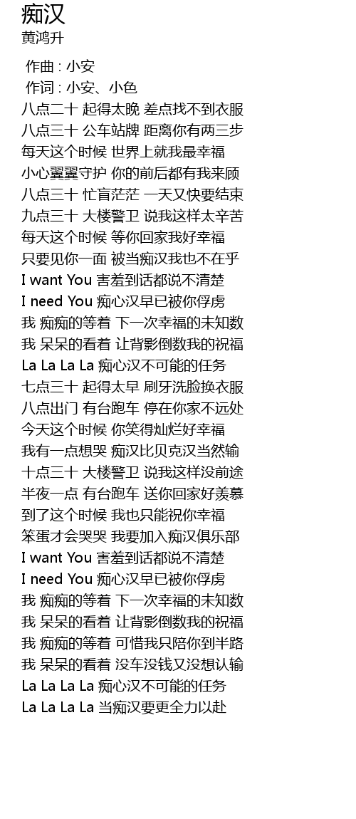 | [00:44.07] | I need You 痴心汉早已被你俘虏 |