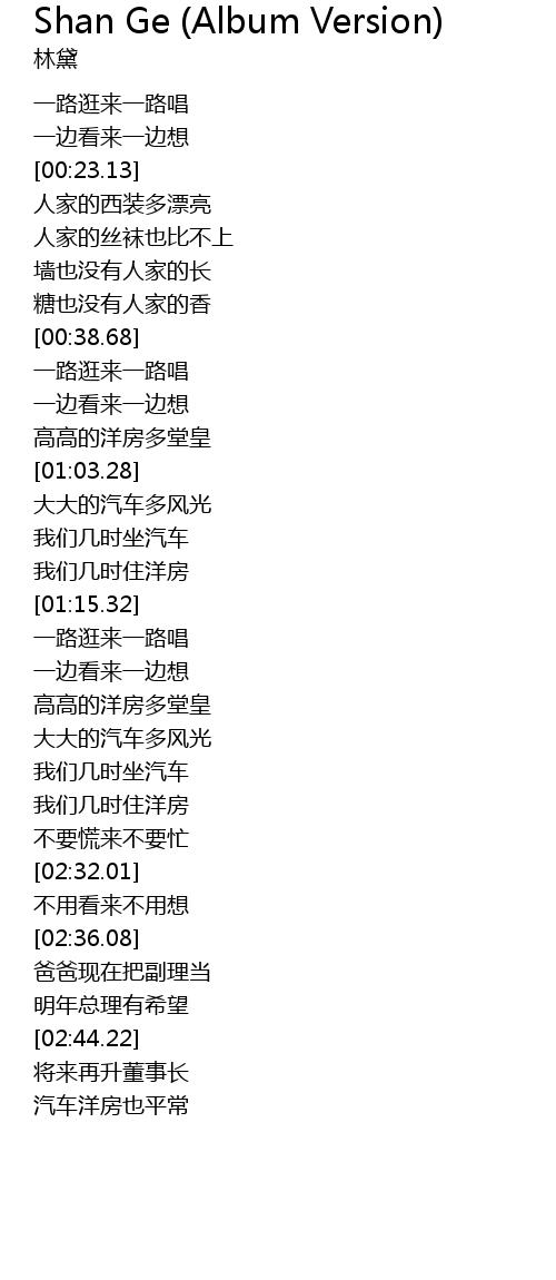 | [02:48.78] | 汽车洋房也平常 |