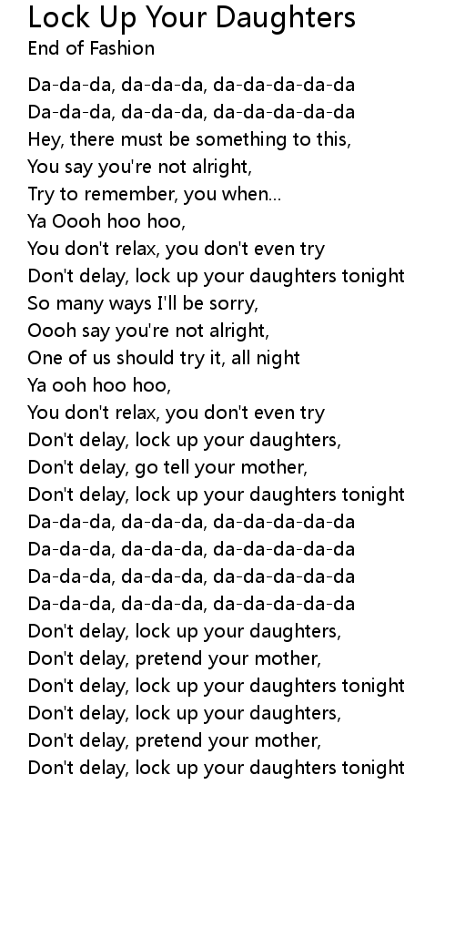 Don't delay, lock up your daughters, |