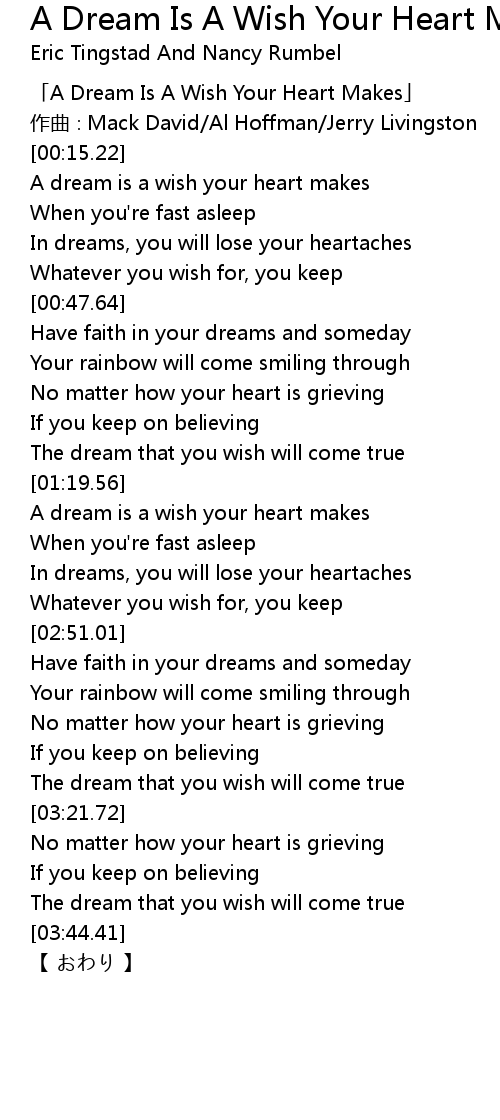 | [00:01.22] | A Dream Is A Wish Your Heart Makes |