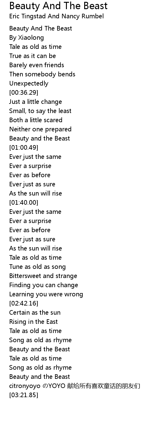 | [03:20.06] | citronyoyo のYOYO 献给所有喜欢童话的朋友们 |