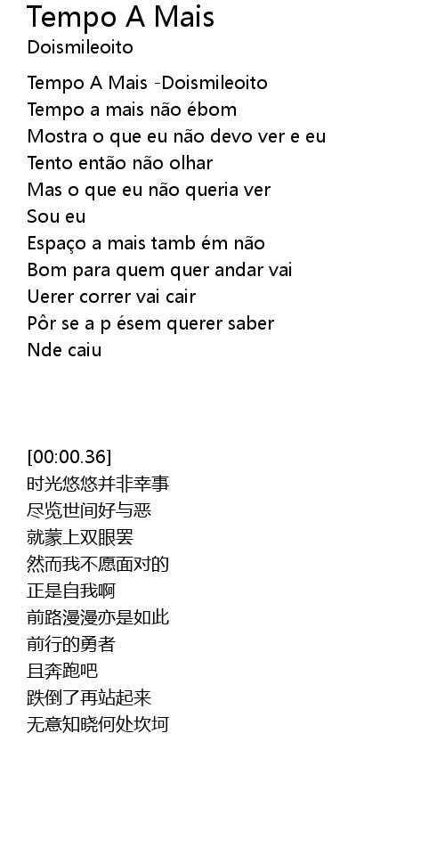 | [00:00.36] | Tempo A Mais -Doismileoito |