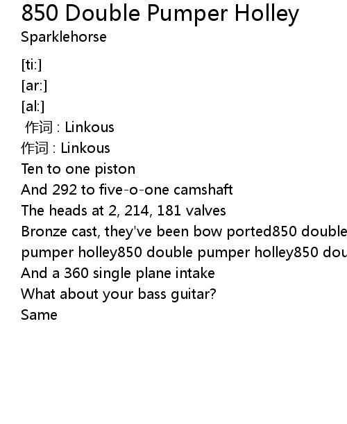 | [00:13.80] | Bronze cast, they' ve been bow ported850 double pumper holley850 double pumper holley850 double pumper holley850 double pumper holley |