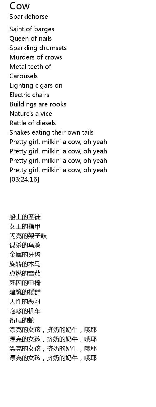 [02:47.90] Pretty girl, milkin' a cow, oh yeah