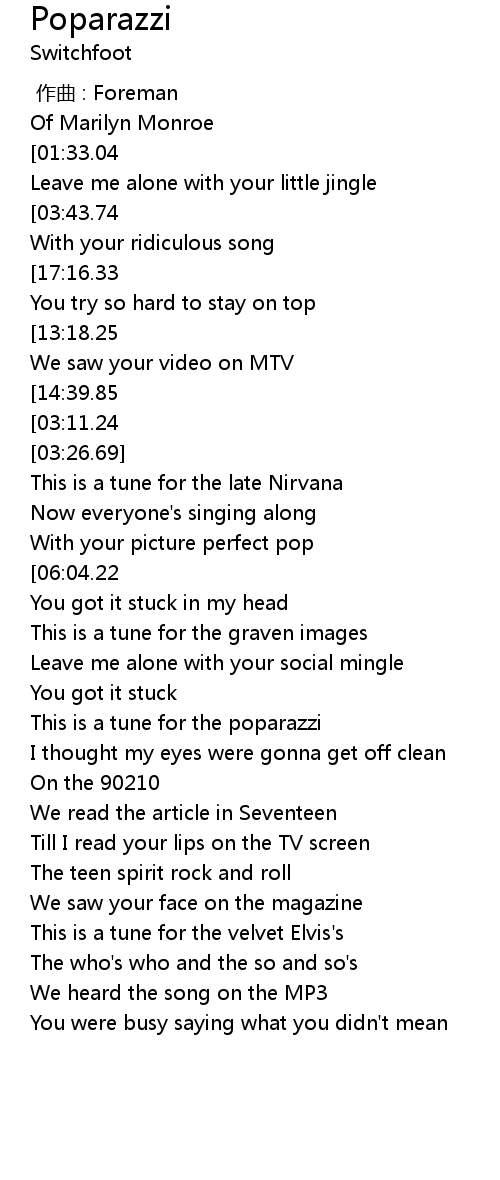 | [15:35.30][14:39.85][07:41.71][02:55.12] | Pop will never leave you alone |
