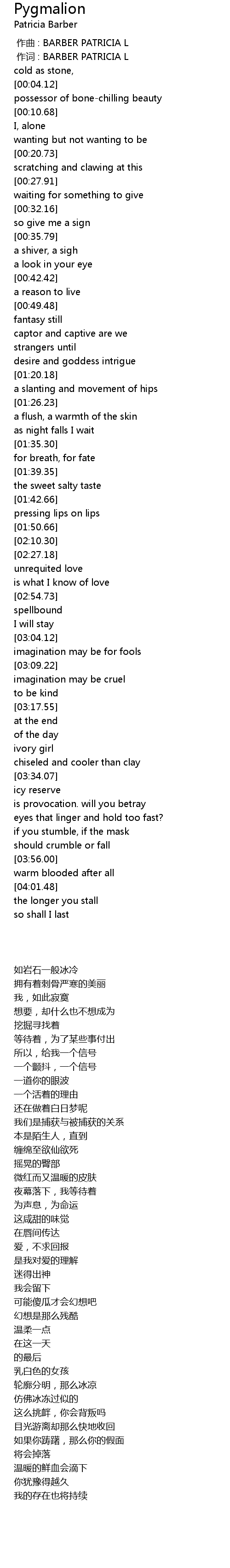 | [00:00.352] | 作词 : BARBER PATRICIA L |