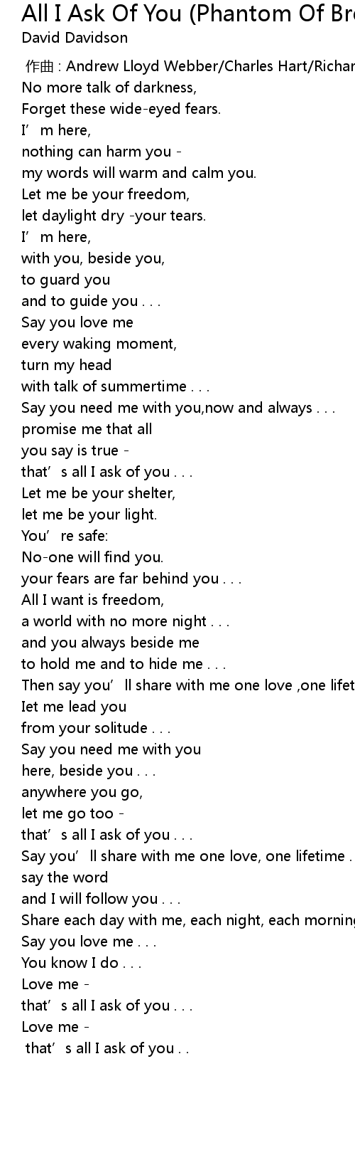 | Song | All I Ask Of You (Phantom Of Broadway album version) |