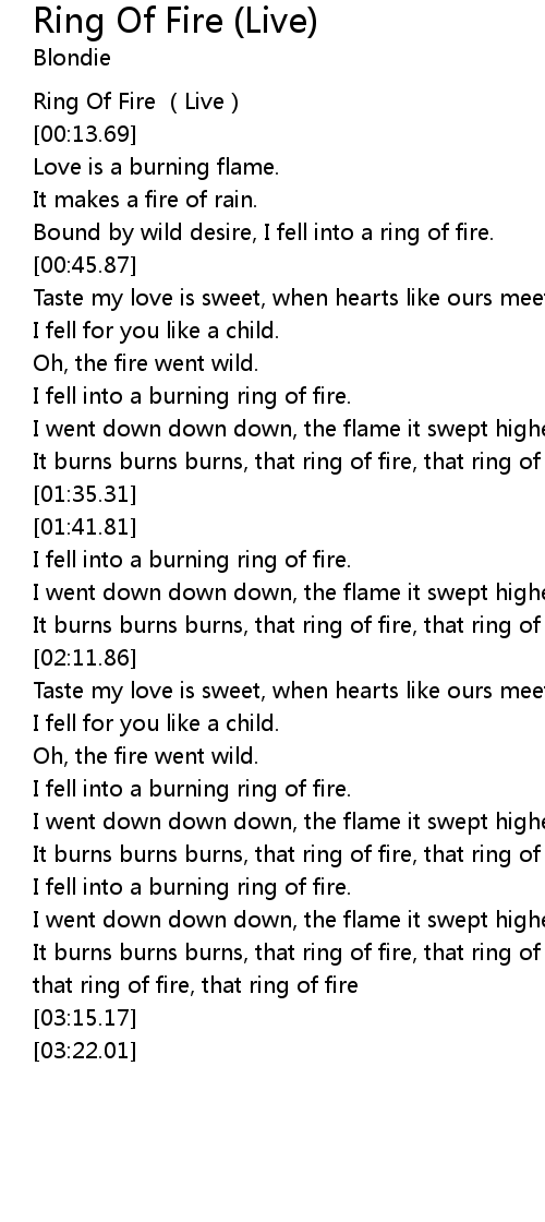 | [03:02.17] | It burns burns burns, that ring of fire, that ring of fire |